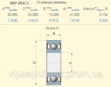 212229.0 подшипник Claas 6007-2RSC3 (з тепловим зазором) SKF