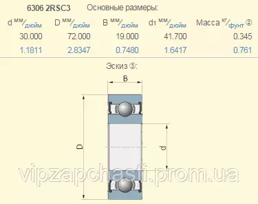 215048.0 подшипник Claas 6306-2RSC3 (C3 - тепловой зазор; 2RS - зашита прорезиненный пластик)