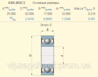215536.0 подшипник Claas 6305-2RSC3 (C3 - тепловой зазор)