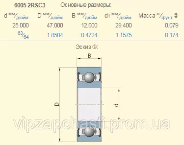 238999.1 подшипник Claas 6005-2RSC3 (C3 - тепловой зазор)