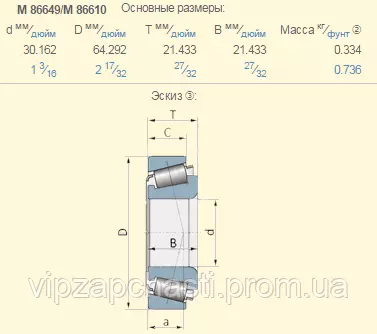 /400983R91 / 530741R1 подшипник M86649R/10 Case аналог