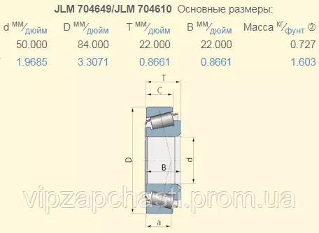 796504 подшипник МКШ 80796504, JLM704649/JLM704610 Case 2020 NTN