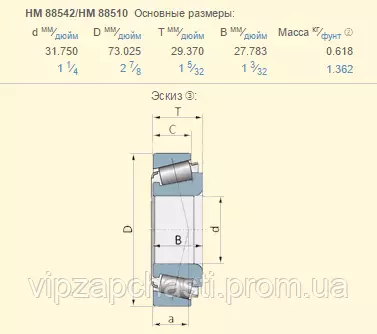 831487M1 подшипник аналог HM88542 + обойма HM88510