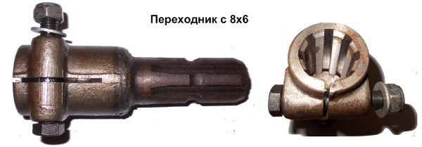 Переходник ВОМ 8х6, адаптор ВОМ с 8 на 6 шлицев, переходник на карданный вал с 8 на 6 шлицев