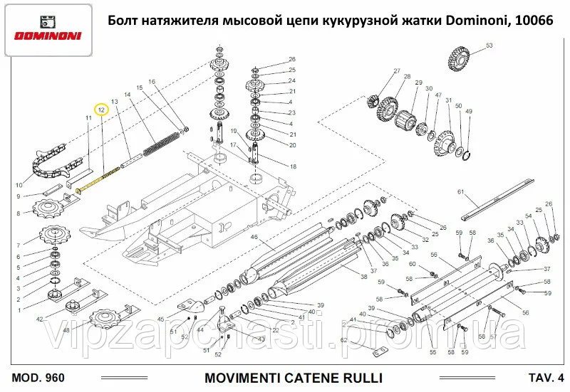Болт натяжителя мысовой цепи кукурузной жатки Dominoni, 10066