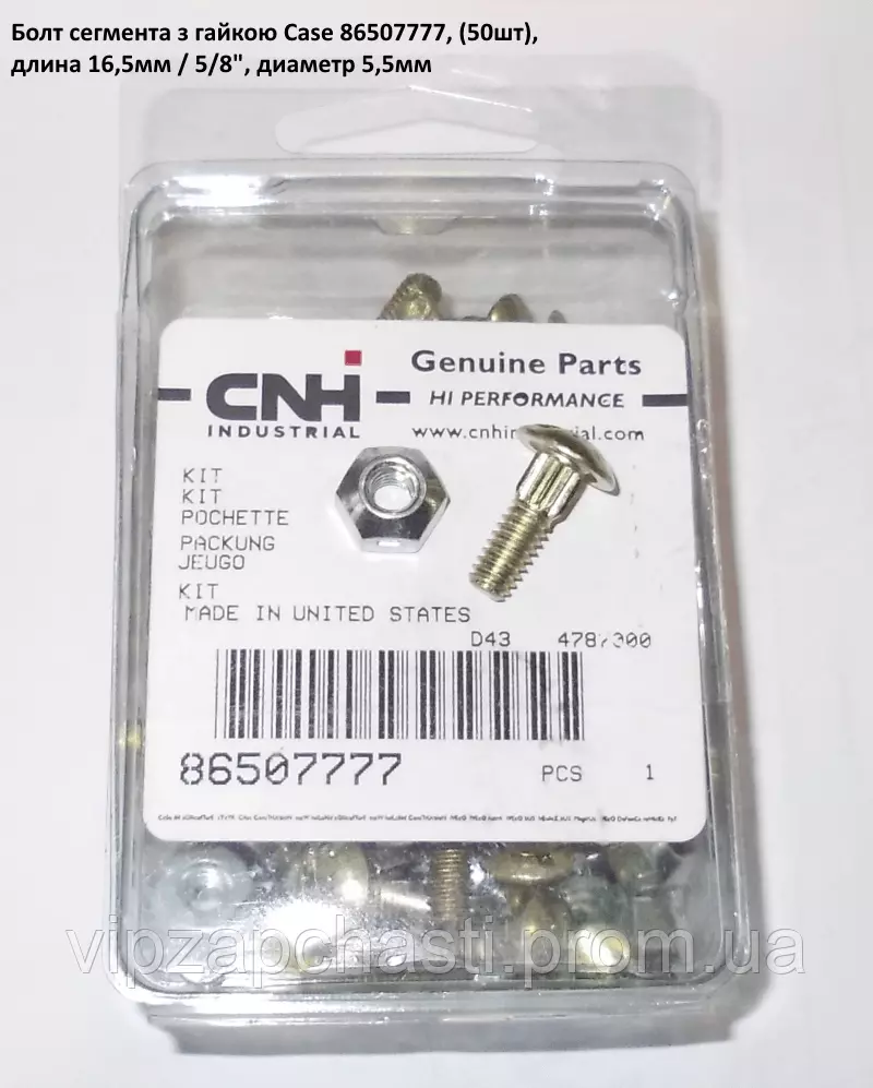 Болт крепления сегмента Case 86507777 размер: (диаметр 5,5мм / высота 16,5мм); аналоги: 700708646, 700705296, H125891