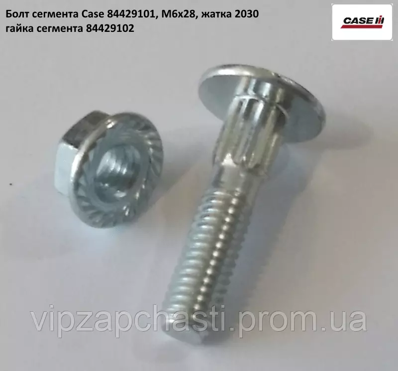 Болт сегмента на пятку косы жатка CASE 2030, 84429101 (М6х28) + гайка 84429102, под сегмент 84429103