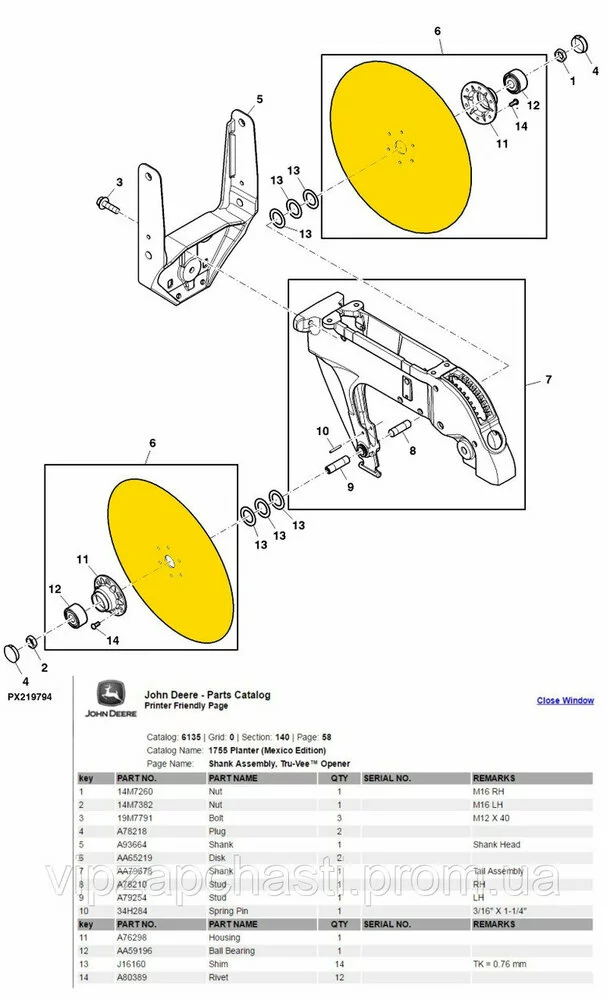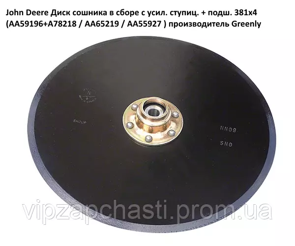 Диск сеялки John Deere AA65219 (рем. комплект диска A76298 ступица + AA59196 подшипник + A80389 заклепка + J16160 крышка)