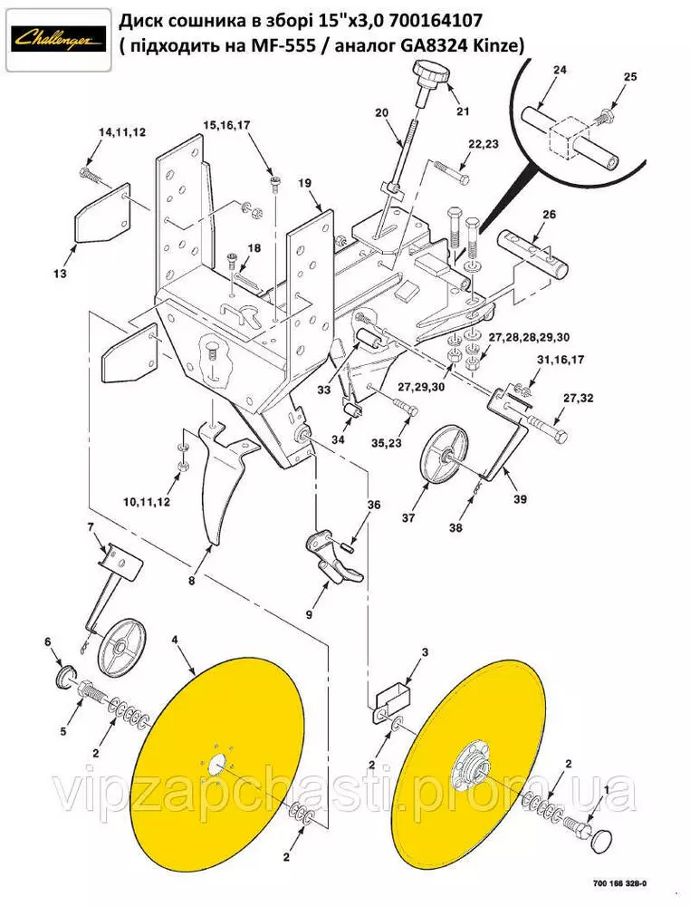 Диск сошника в зборі 15"х3,0 700164107 MF-555, (аналог GA8324),