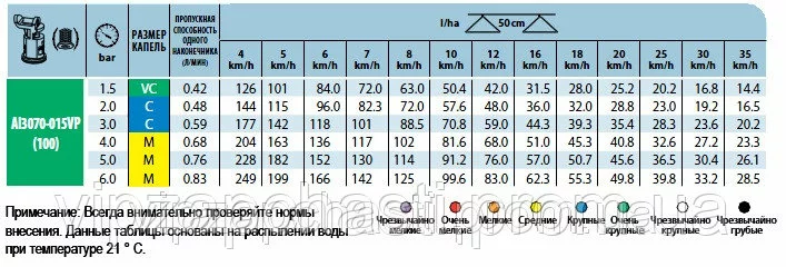 Характеристики распылителей AI3070