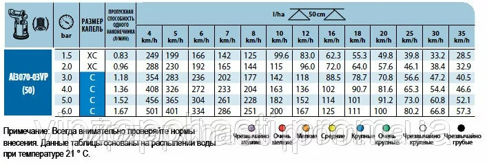 Характеристики распылителей AI3070