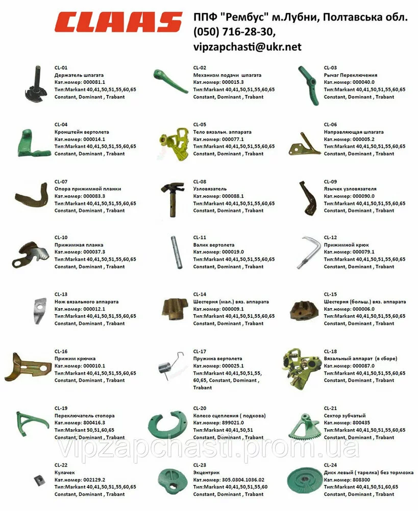 Цены на запчасти пресс-подборщик Claas: