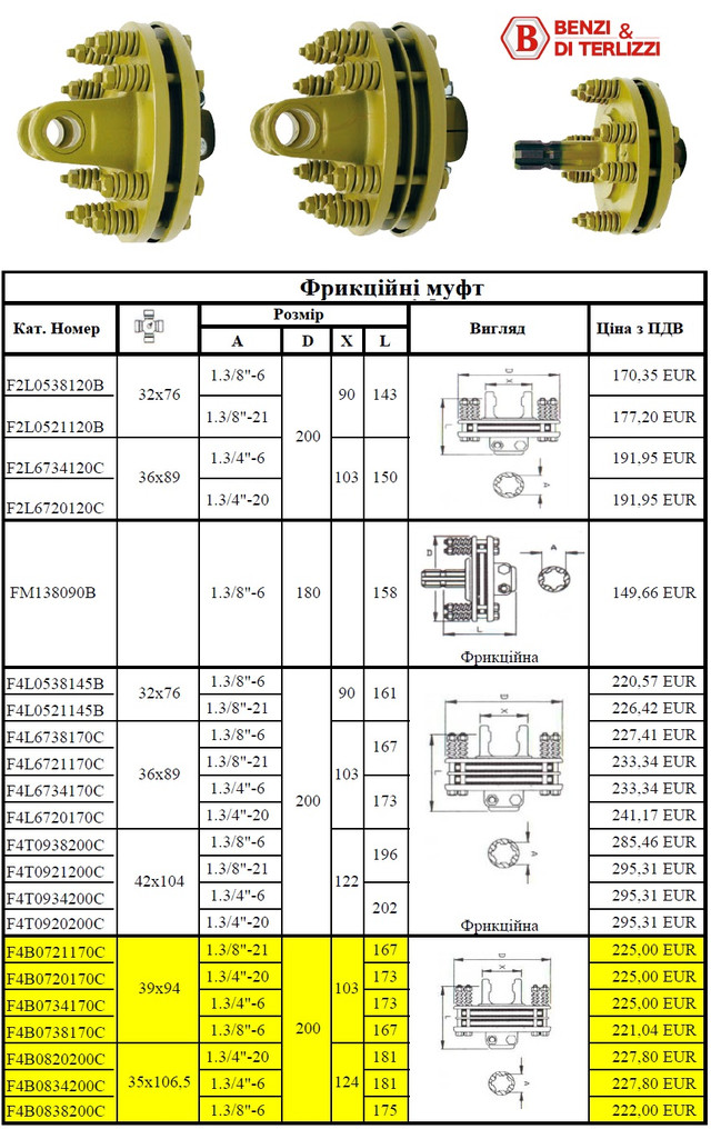 Муфта фрикционная на карданный вал Benzi di Terlizzi (Италия)