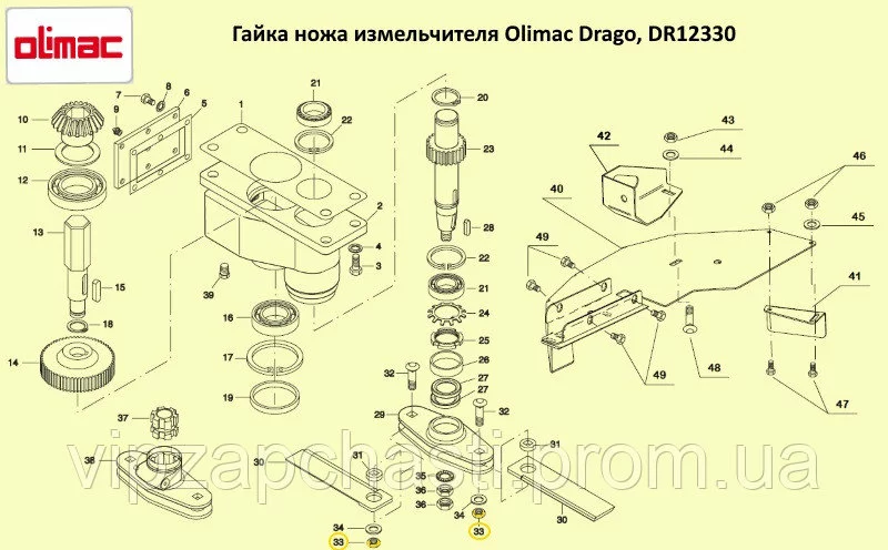 Гайка крепления ножа измельчителя Olimac Drago DR12330, поз.33