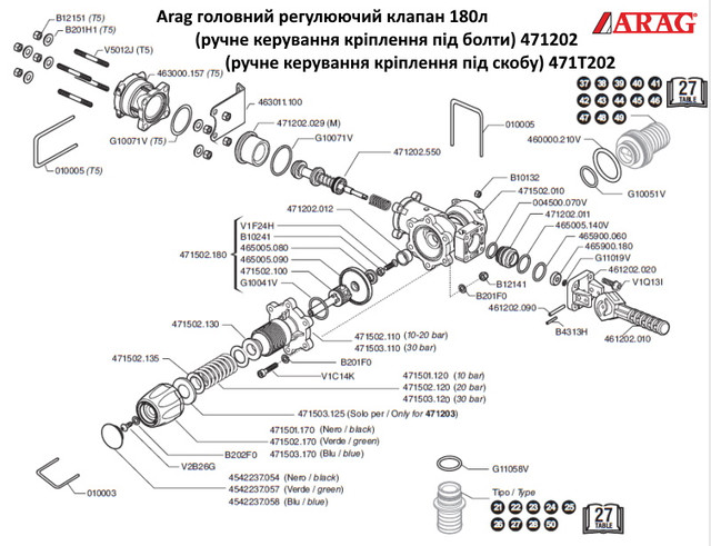 Головной регулирующий клапан 180л (ручное управление) (под скобу) Arag 471T202