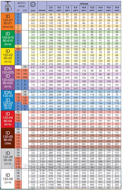 ID-05 до -08 от 2,0 до 8,0 атм - Подходят к системам с байонетными головками с отверстием на 10 мм