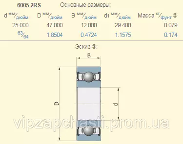 JD30543 подшипник 6005-2RS John Deere SKF