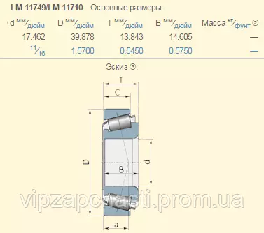 JD8914/JD8244 подшипник John Deere LM11749/10 KINEX