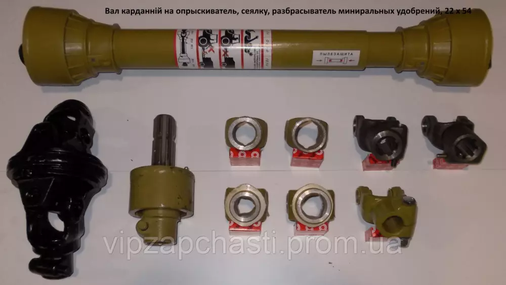 Карданный вал на опрыскиватель, крестовина (22 х 54), вилки любой конфигурации, труба трехгранная или профиль лимон