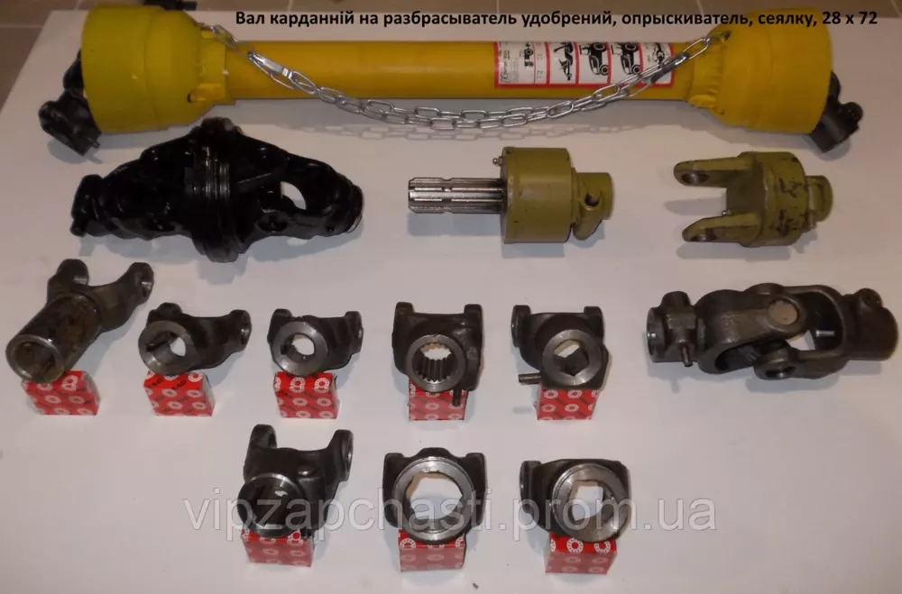 Карданный вал на разбрасыватель удобрений, крестовина (28х72), вилки любой конфигурации, труба трехгранная или профиль лимон