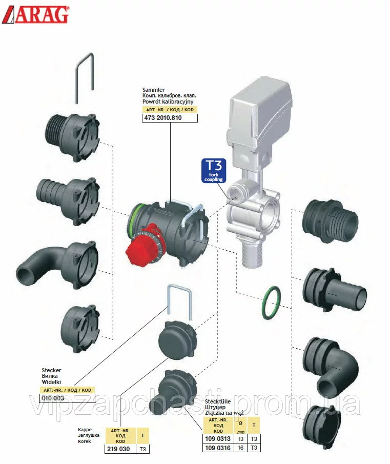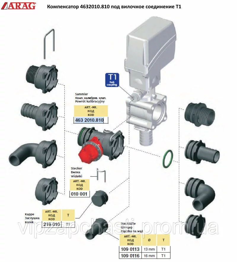 Клапан відсікача обратки розподільника (компенсатор для електроклапана) Arag, 4632010.810