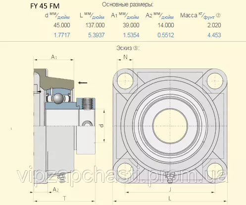 Корпус с подшипником Massey Ferguson D41703000 аналог FY45FM, PCJ45-XL-I SKF