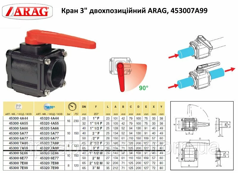 Кран 3" двохпозиційний ARAG, 453007A99