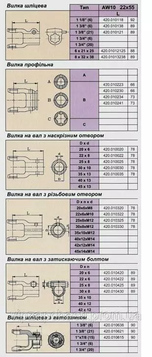 Вилки под шпонку на крестовину 22х55 мм