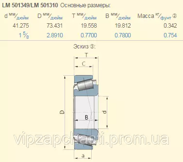 LM501349 / LM501310 подшипник