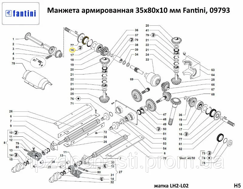 Манжета армированная 35x80x10 мм кукурузной жатки Fantini, 09793