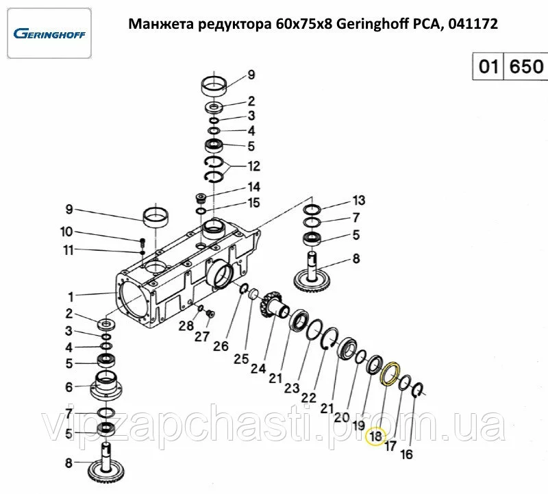 Сальник редуктора 60х75х8 Geringhoff PCA, 041172