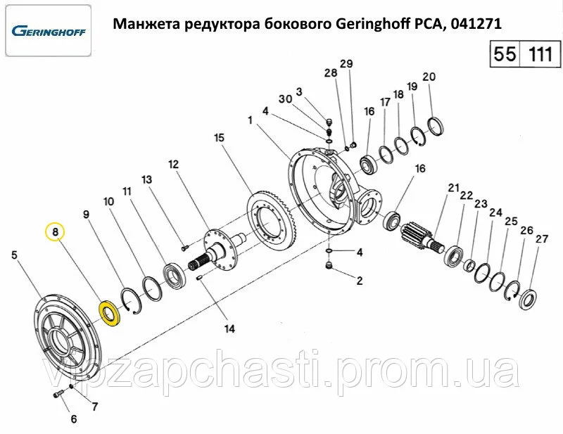Манжета редуктора бокового Geringhoff PCA, 041271