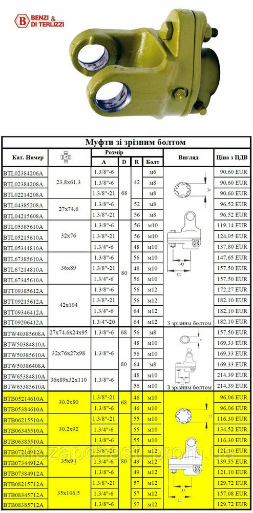 Муфта предохранительная на карданный вал benzi-di-terlizzi