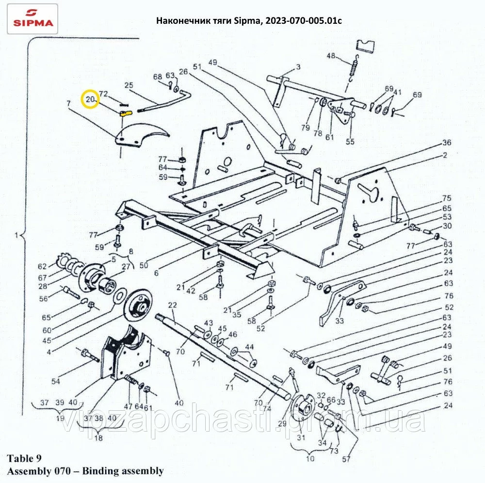 Наконечник тяги пресс-подборщика Sipma 2023-070-005.01c (поз.20)