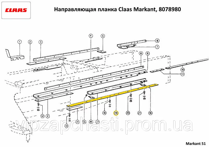 Направляющая L-124.5 мм h-37.1 мм 10 отверствий планка Claas Markant 50, 807898