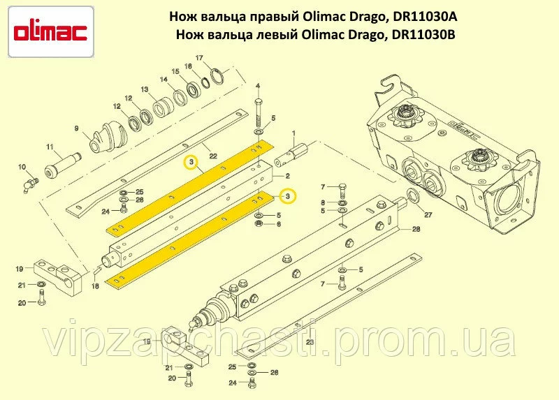 Нож вальца левый на кукурузную жатку Olimac Drago, DR11030В, поз.3