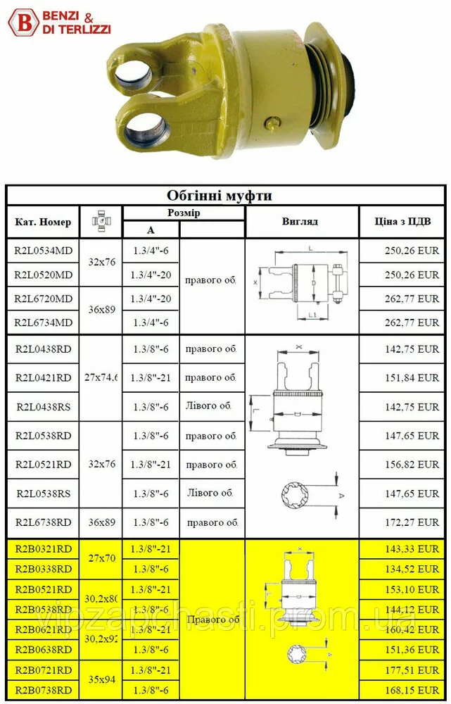 Обгонная муфта на карданный вал (производитель Benzi di Terlizzi (Италия)
