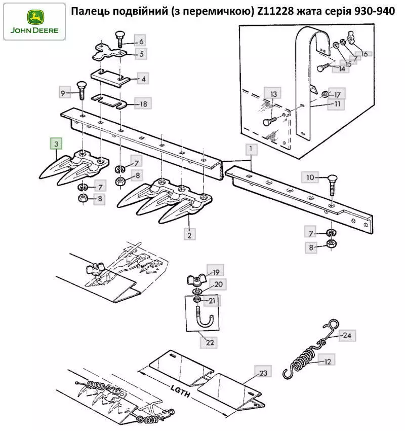 Палець подвійний з перемичкою John Deere Z11228
