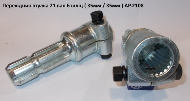 Переходник ВОМ 6х6, адаптор ВОМ, переходник на карданный вал с 21 шлица (35мм) на 6 шлицев (35мм)