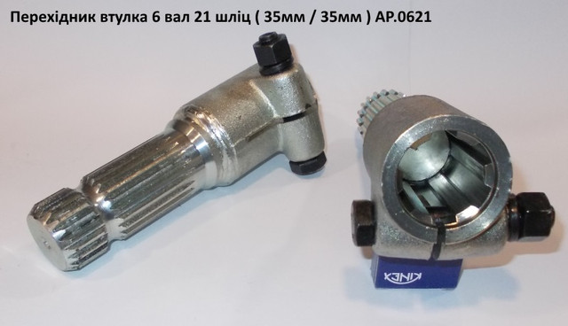 Переходник ВОМ 6х6, адаптор ВОМ, переходник на карданный вал с 6 шлица (35мм) на 21 шлицев (35мм)