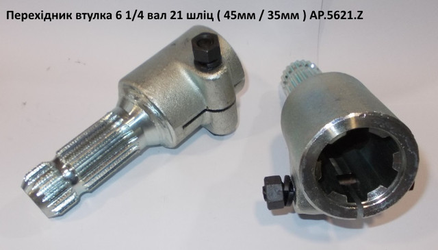 Переходник ВОМ 6х6, адаптор ВОМ, переходник на карданный вал с 6 шлица (45мм) на 21 шлицев (35мм)