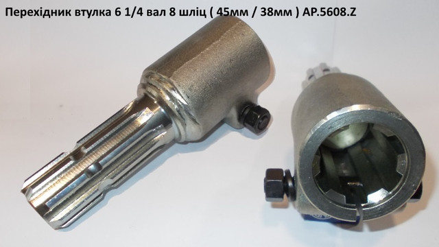 Переходник ВОМ 6х6, адаптор ВОМ, переходник на карданный вал с 6 шлица (45мм) на 8 шлицев (38мм)