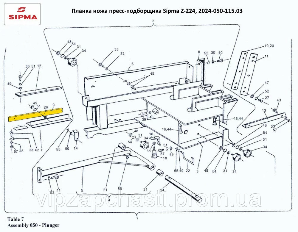 Планка ножа пресс-подборщика Sipma Z-224, 2024-050-115.03 (поз.9)