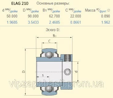 Подшипник 216429.0 аналог YELAG 210 (з портійним захистом) SKF