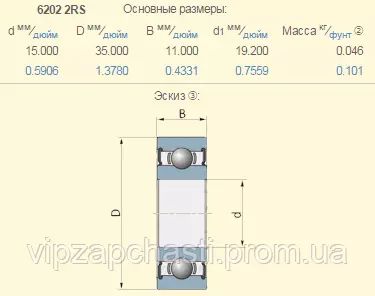 Подшипник 80308803 CASE аналог 6202-2RS SKF