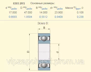 Подшипник Case 131097C91 аналог 6303-2RS SKF