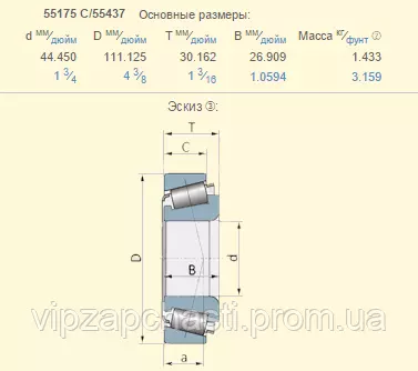 Подшипник Case 287679C1 аналог 55175C/55437 Timken