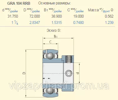 Подшипник Case 387284А1 аналог GRA104RRB, GRA104NPPB INA (Германія)