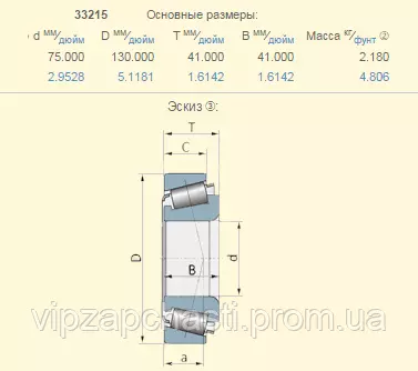 Подшипник Claas 218823.0 аналог 33215 KINEX - Словаччина