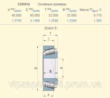 Подшипник Claas 233199.0 аналог 33208/Q KOYO - Словаччина